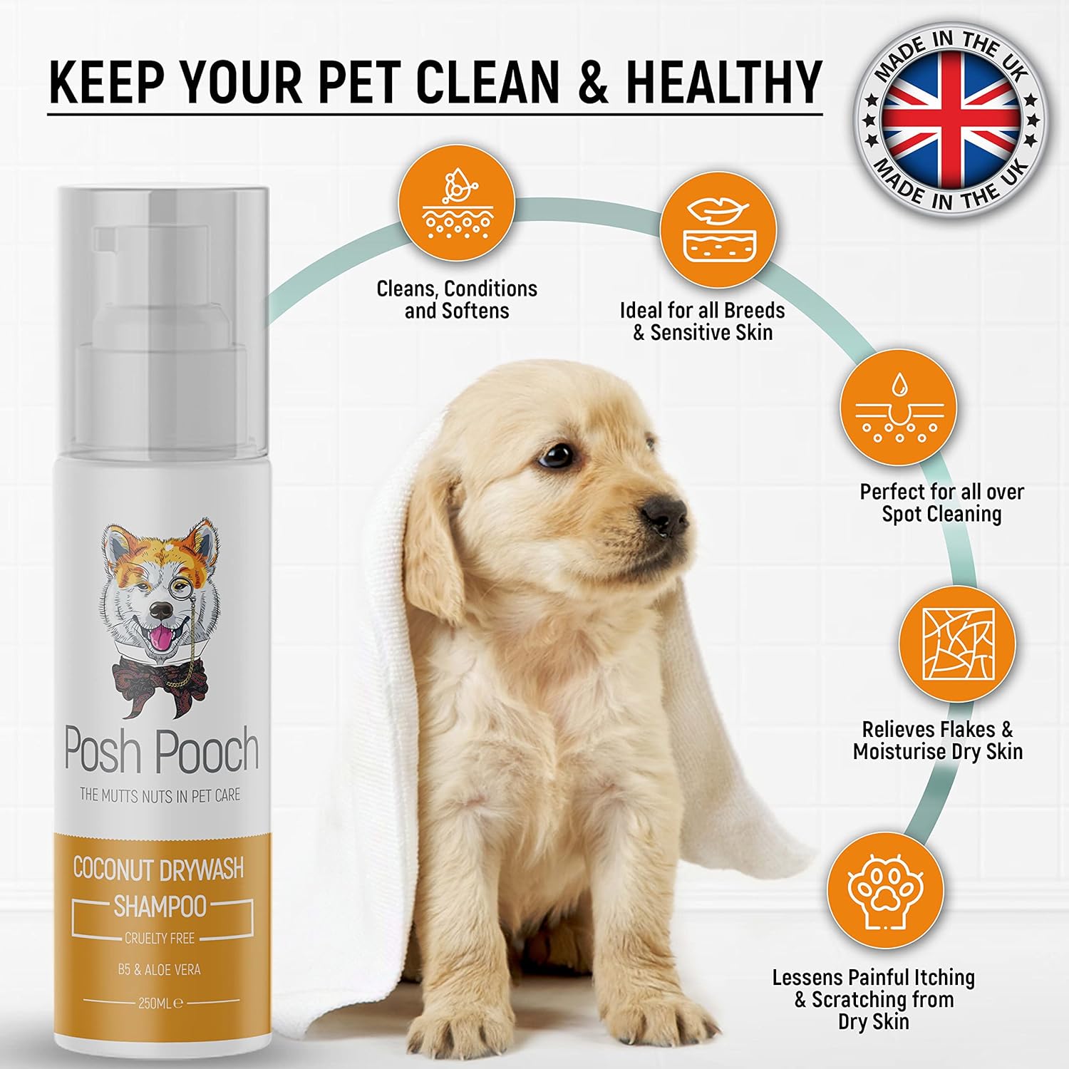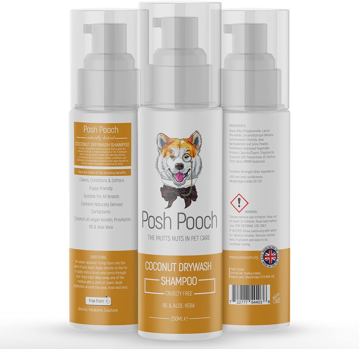 - Posh Pooch 3 in 1 Wash, Conditioner & Detangler - Perfect for pets that don't like the bath or travelling when water is not available.It's portable, making it convenient for traveling. It also works great as a detangler and leaves coat silky smooth and shiny after brushing,