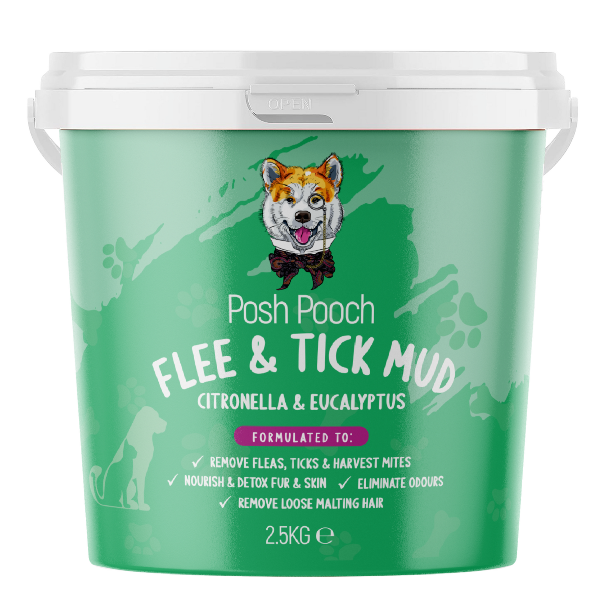 Posh Pooch Flea & Tick Mud: Clean your dog's fur and skin the natural way with this citronella and eucalyptus mud. Infused with coconut oil, Vitamin A, witch hazel, and citrus extract, it provides essential omega oils and vitamins for a healthy, nourished coat and skin, prevents & helps further biting, itchy skin , cracked skin, to keep your pooch happy and above all healthy.