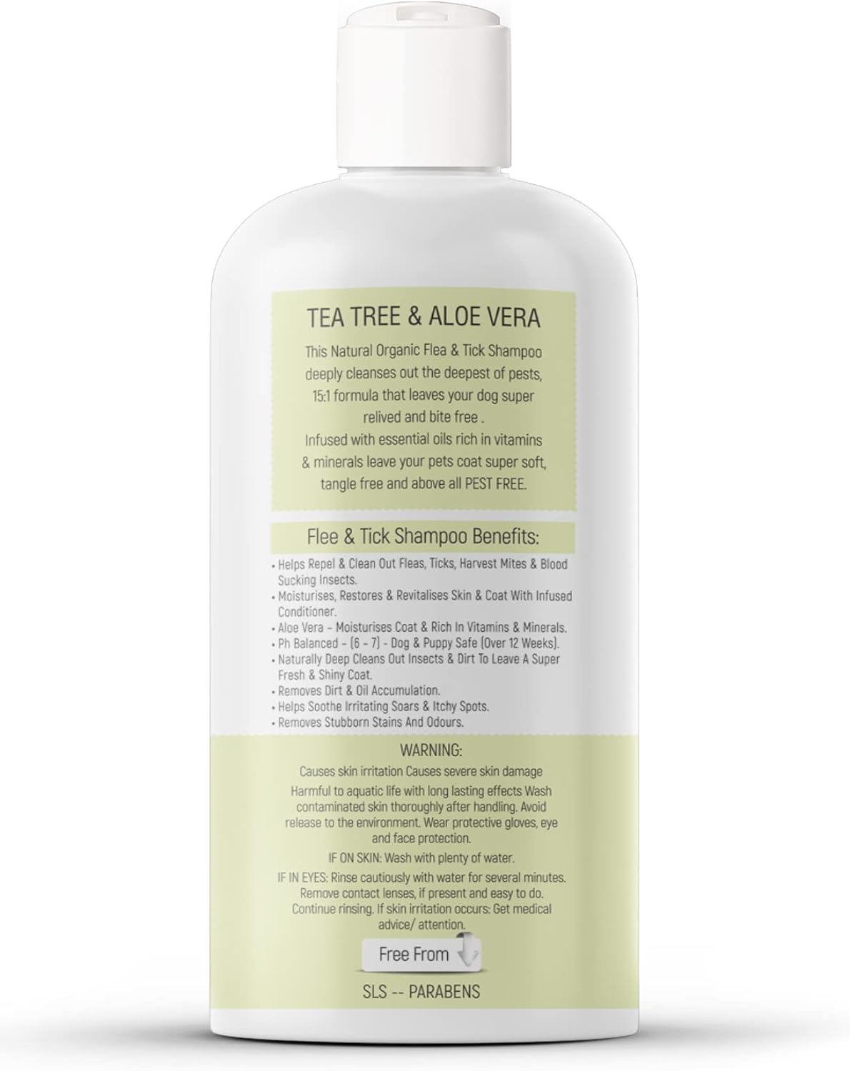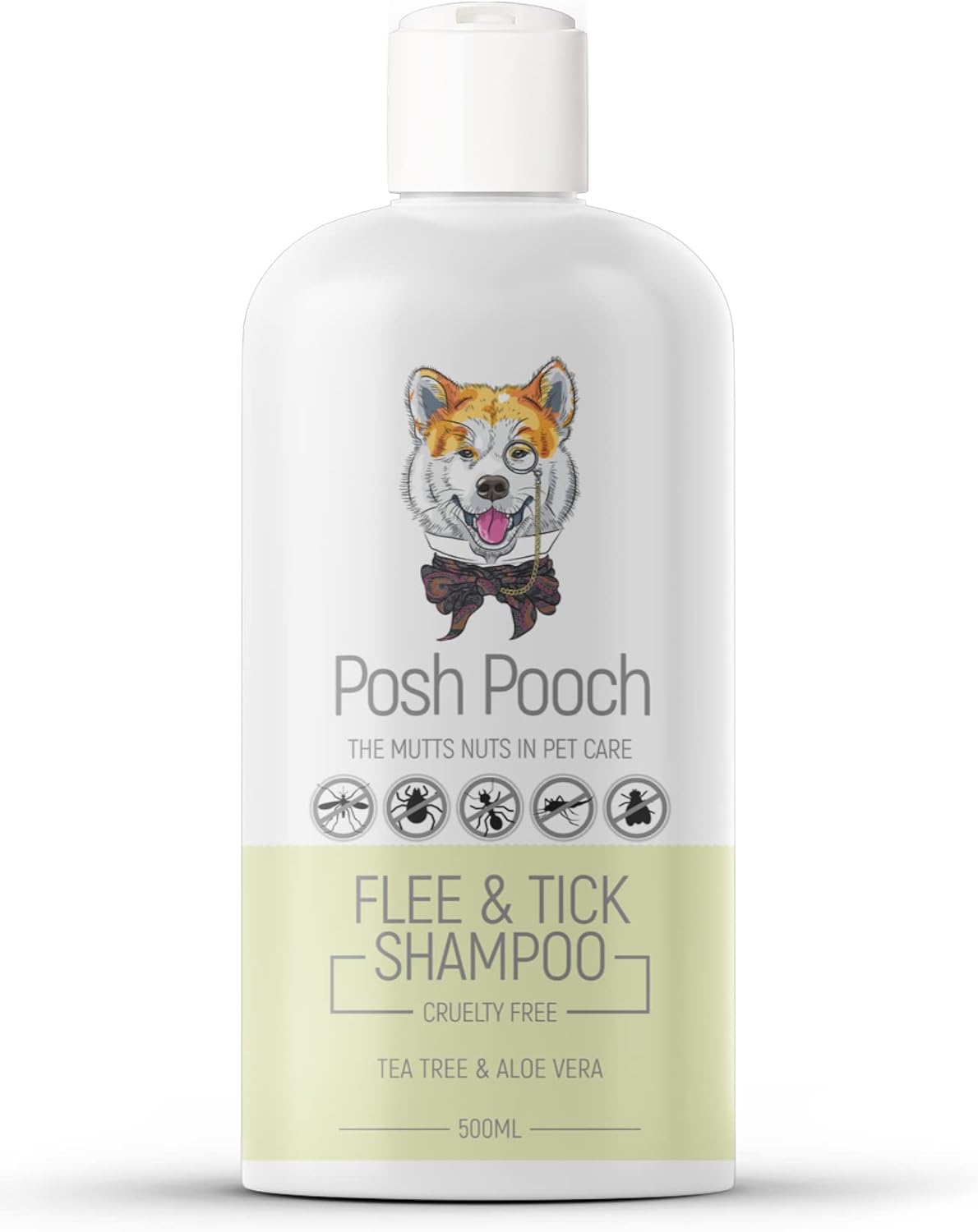 - SAY GOODBYE TO TICKS & FLEAS: There's nothing more annoying for your furry friends than ticks, fleas, and other insects, pests and parasites, but don't worry; that's what we are here for. Our Posh Pooch Flea & Tick dog shampoo will get your pets rid of infections quickly and efficiently! The Tea Tree & Aloe Vera Shampoo: Our naturally derived shampoo effectively washes out the most toughest of fleas, ticks, harvest mites and other blood sucking insects.
